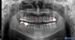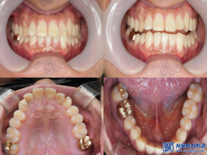 또한 오른쪽 아래 금으로 씌워진 치아는