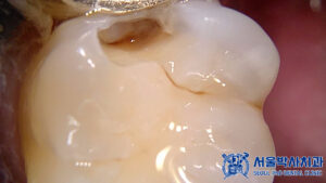 오른쪽 앞니는 충치가 매우 심한 상태였습니다.