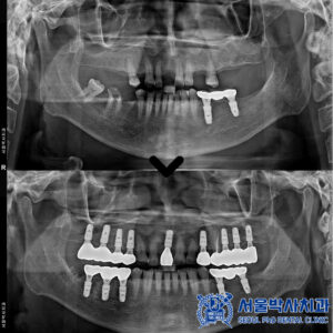 기존 브릿지 제거 및 뼈이식 임플란트와 크라운 사례